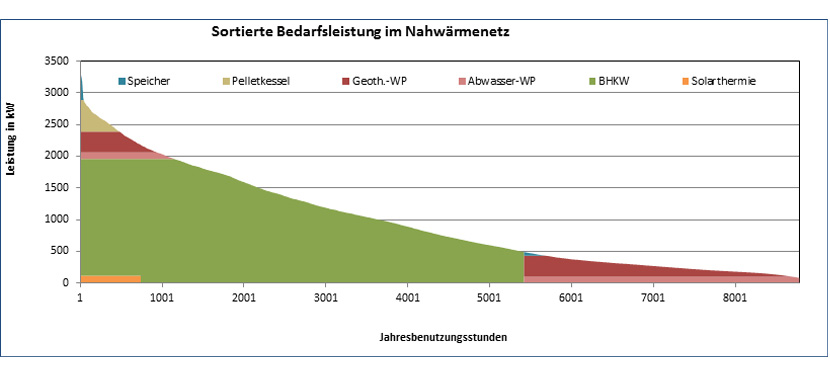 - Bewertung verschiedener Technologien wie KWK, Abwasserwärmenutzung, oberflächennahe Geothermie, Holz-Biomasse, Solarthermie