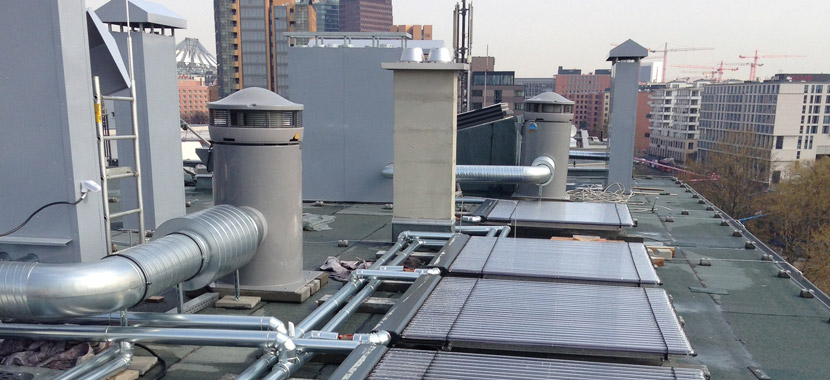 Neubau eines 7-geschossigen Wohnhauses (BGF: ca. 5.400 m²) mit 57 Wohneinheiten und einer Ladeneinheit, sowie 35 Tiefgaragenparkplätzen mit Stromversorgung für Elektroautos nach der KfW-55 Energieeffizienzanforderung. Die Wärmeversorgung erfolgt über das Vattenfall Fernwärmenetz und eine solare Warmwasserunterstützung mit Röhrenkollektoren. Die Baukosten für die technische Gebäudeausrüstung lagen bei 1,35 Mio. € netto.